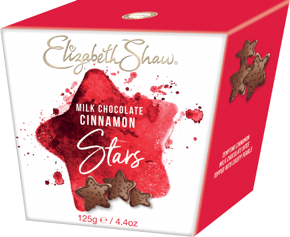 Milk chocolate stars with cinnamon flavouring and sugar crisps. A taste of Christmas.