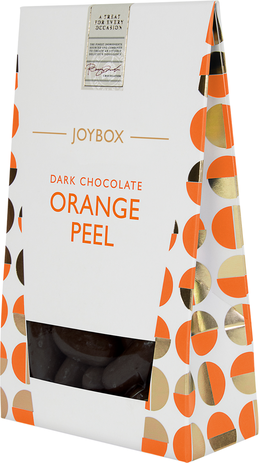 Dark Chocolate (77%) (Sugar, Cocoa Mass, Cocoa Butter, Whey (Milk), Vegetable Fat (Palm Oil SG), Emulsifier (Lecithins)), Glazing Agents (Gum Arabic, Shellac), Candied Orange Peel (23%) (Orange Peel, Sugar, Preservative (Citric Acid)).