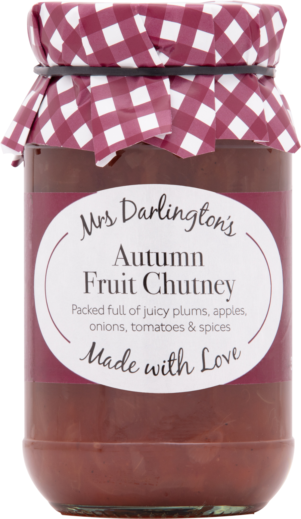 Mrs Darlington's autumn fruit chutney is packed full of plums, apples, onions, tomatoes and spices that have all been simmered slowly. Delicious with cold cuts of meats, a staple for every fridge.