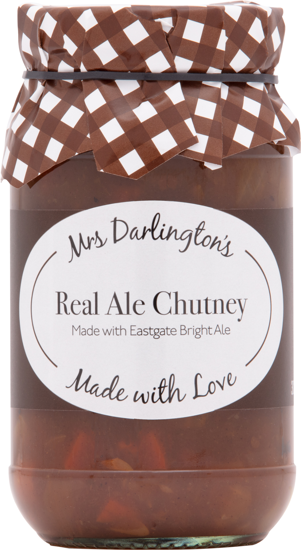 Onions, Sugar, Carrots, Apple, Malt Vinegar (from Barley), Cauliflower, Real Ale 5% (Wheat, Sulphites), Treacle (Cane Molasses, Invert Sugar Syrup), Modified Maize Starch, Dates (Rice Flour), Garlic, Stabiliser (Pectin), Tomatoes, Salt, Colour (Natural Caramel), Spices.