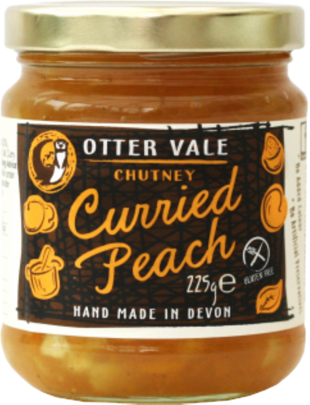 Sugar, Vinegar, Peaches (23%), Onions, Modified Starch (from Corn), Salt, Curry Powder (Mustard), Lemon Juice.