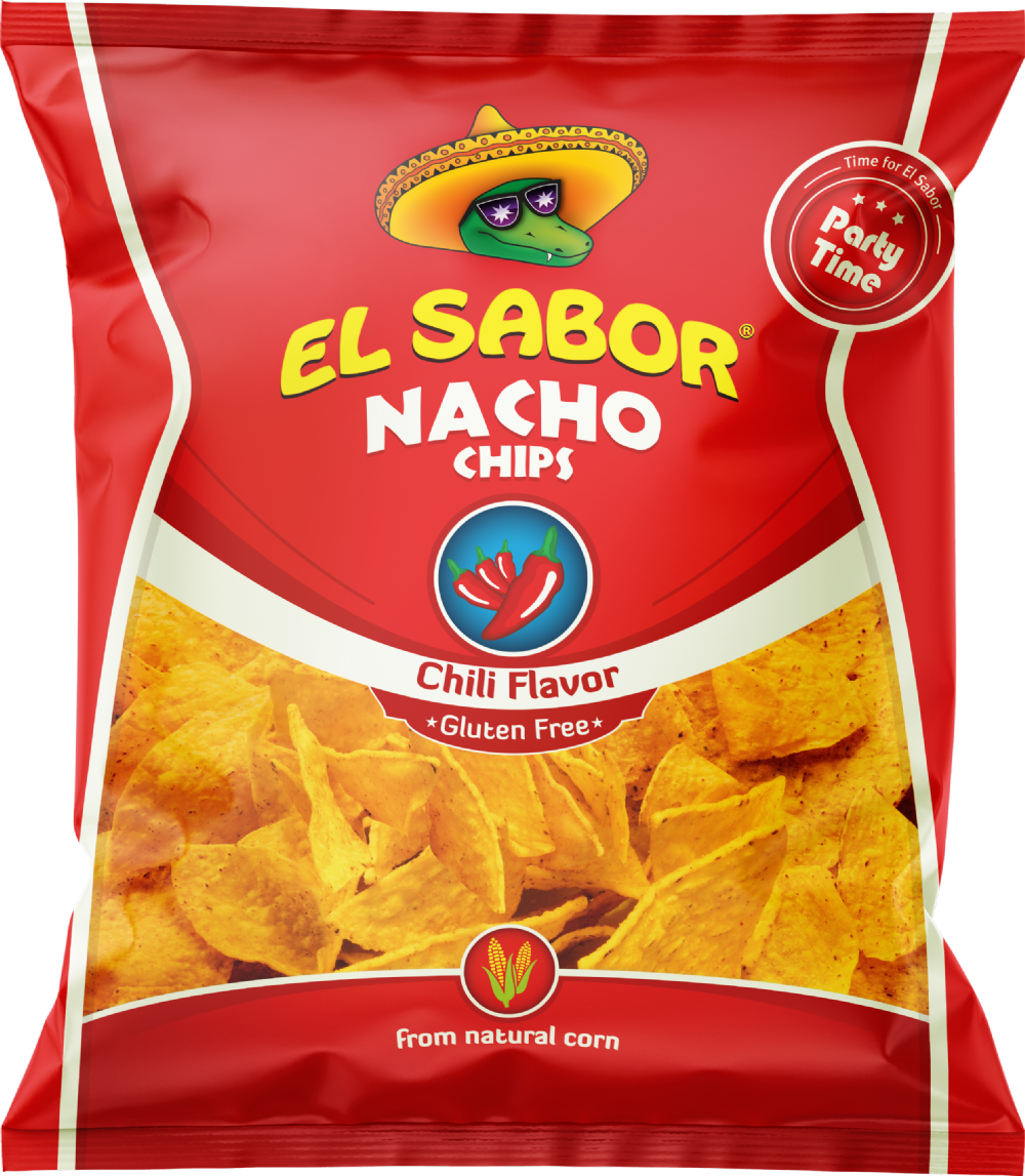 Crispy Chili flavoured nachos from non-genetically modified corn.