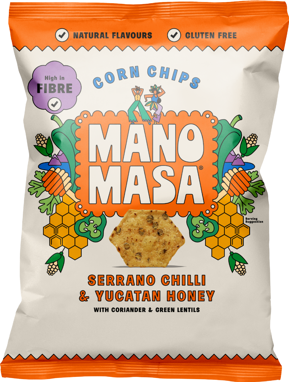 Whole White Corn Flour, Vegetable Oils (Rapeseed, Sunflower), Green Lentils, Rice Flour, Sugar, Rice Flour, Green, Jalapeno, Ground Spices (Chilli, Cumin, Ginger, Star Anise), Cilantro Herb (Coriander), Sea Salt, Dried Onion, Dried Garlic, Dried Tomato, Dried Yucatan Honey, Dried Balsamic Vinegar), Dried Yeast Extract, Natural Flavouring, Acid (Citric Acid), Paprika Extract, Serrano Extract.