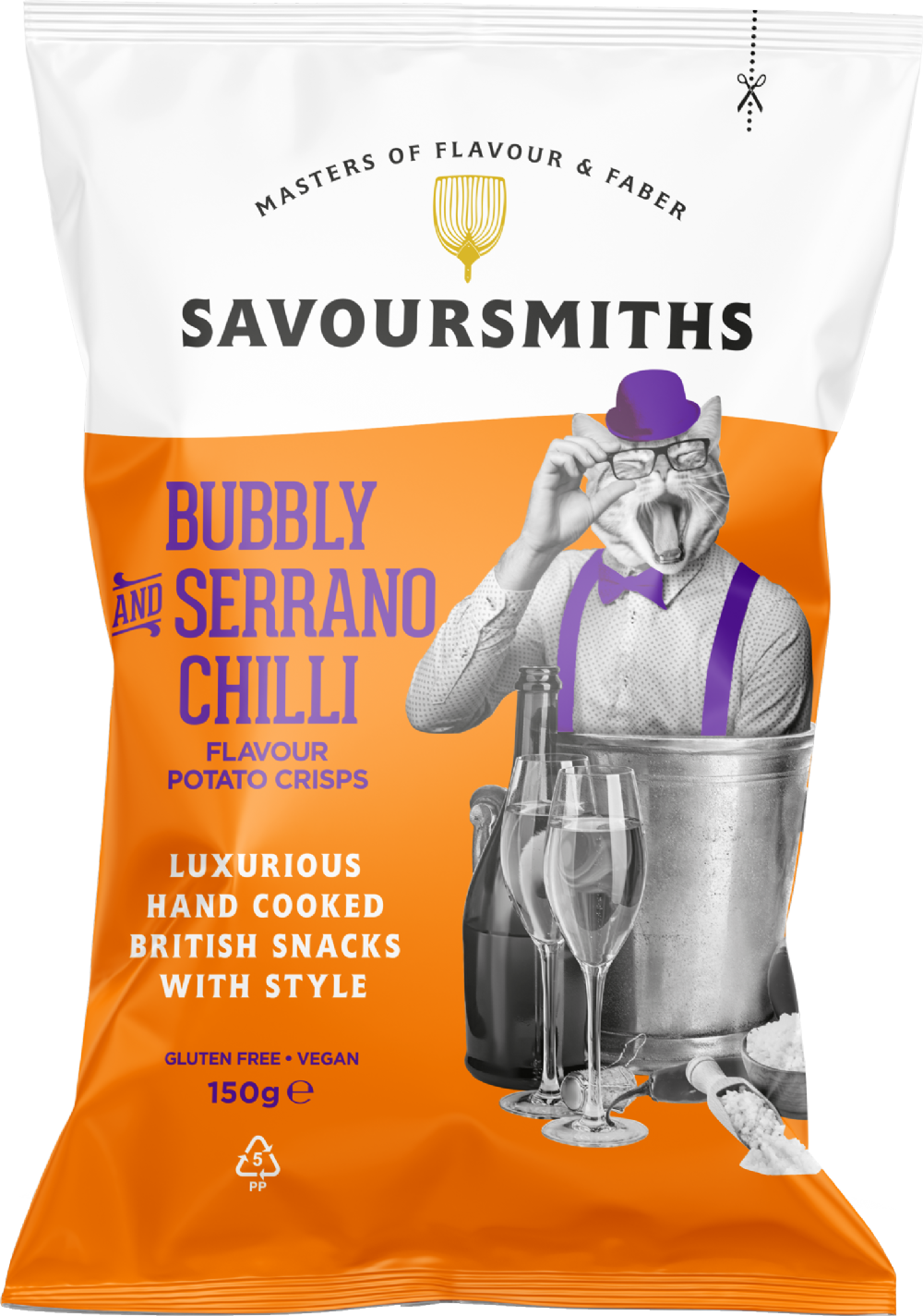 Potatoes, Sunflower Oil, Bubbly and Serrano Chilli Flavour (Rice Flour, Sugar, Acidity Regulators (Sodium Bicarbonate, Tartaric Acid), Chardonnay Wine Powder, Yeast Extract Powder, Onion Powder, Spirit Vinegar Powder, Spice (Cayenne Pepper), Salt, Acidity Regulator (Citric Acid), Sea Salt, Natural Flavouring, Anti-Caking Agent (Silicon Dioxide), Dried Red Bell Pepper, Norfolk Sparkling Wine).