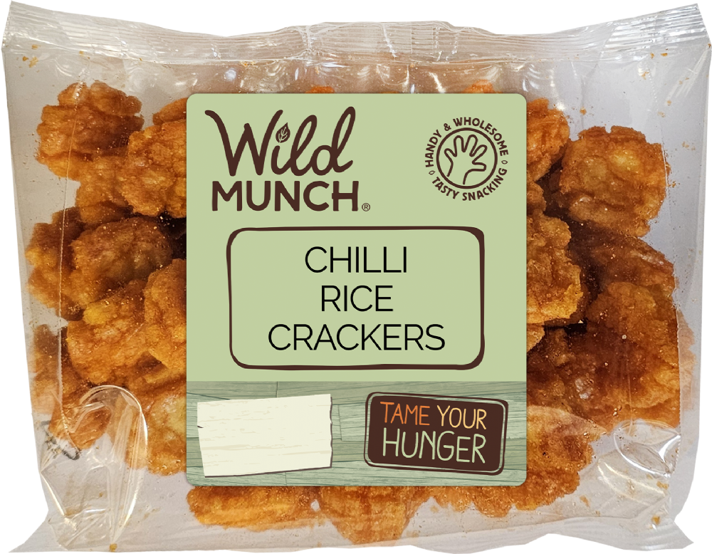 Taste the wild side with every handful of Wild Munch Chilli Rice Crackers. These fiery bites combine the savoury crunch of rice crackers with the kick of chilli peppers. Packing a powerful punch, they'll keep you going on any adventure.