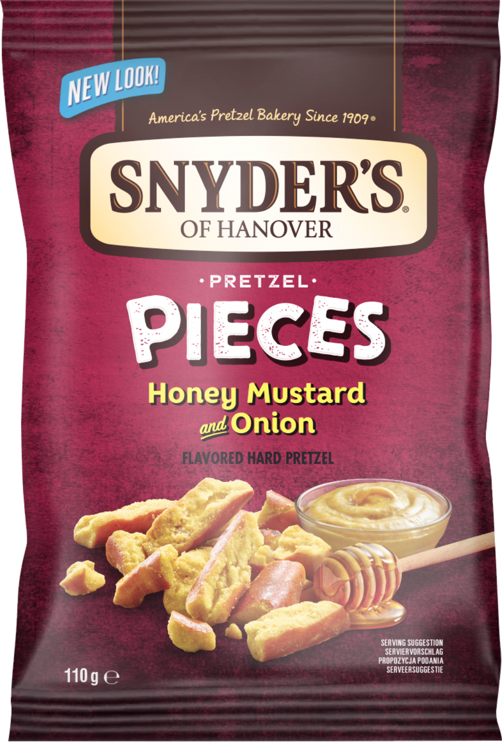 Generous chunks of our Sourdough Hard Pretzels bursting with intense flavour combinations…like the delectable honey mustard and onion in our Honey Mustard & Onion Pretzel Pieces.