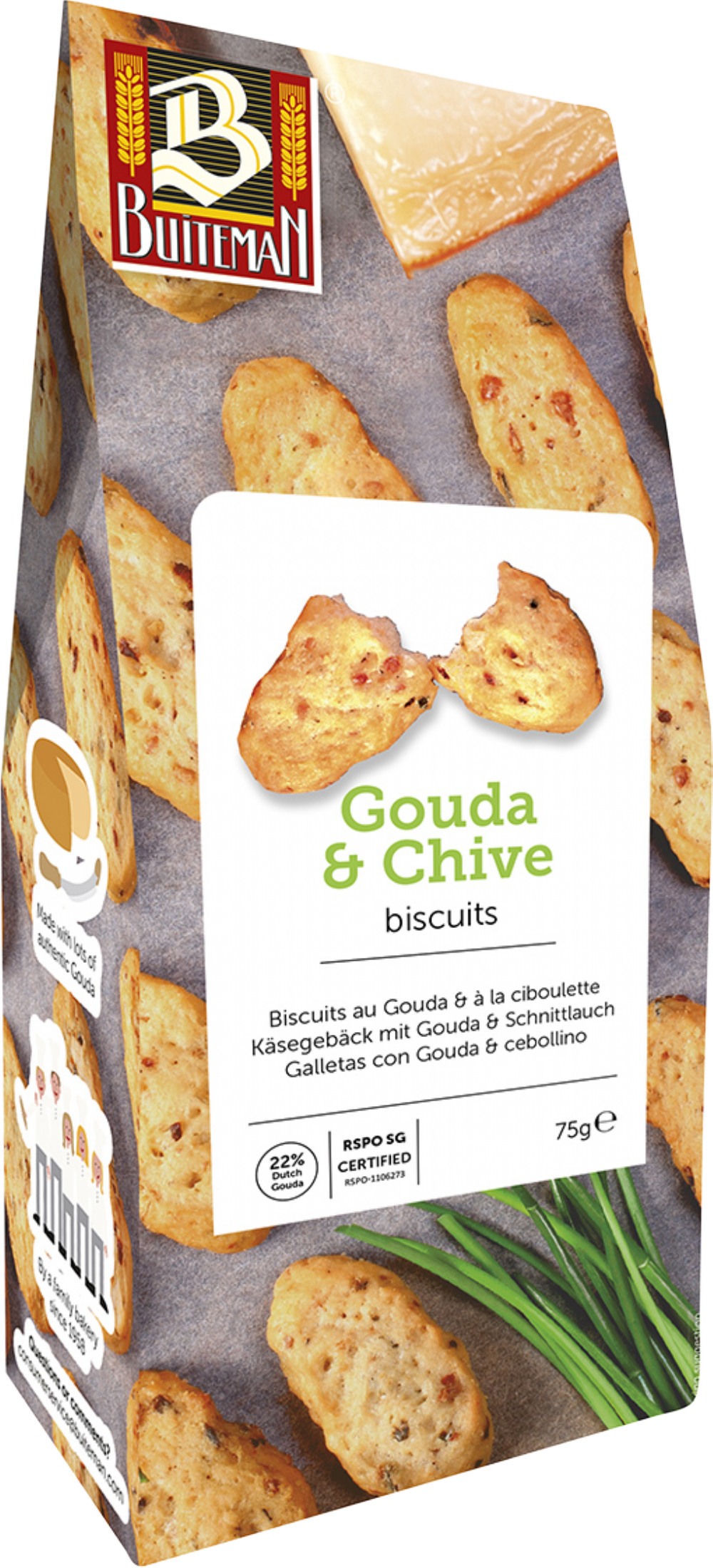 Savoury biscuits made with 18 month aged Gouda cheese.