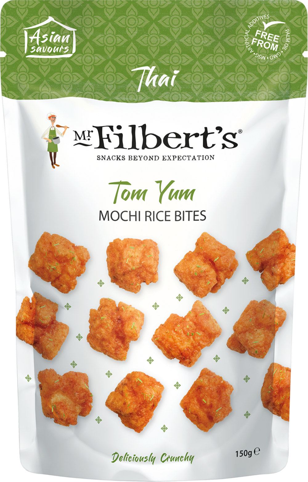 An iconic flavour that combines sweet, sour, salt and spice all in one, our Thai Tom Yum Mochi Rice Bites take classic Thai spices, including aromatic lemongrass and distinctive Kaffir lime leaves to create a mouthwatering snack that’s bursting with flavour.