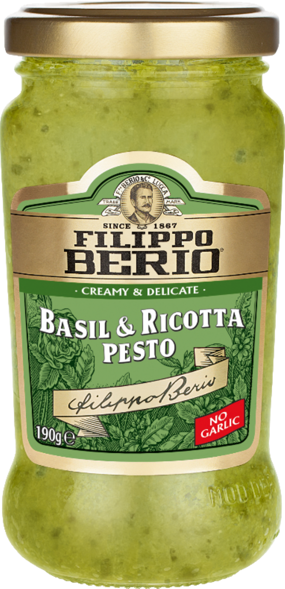 Experience the creamy texture and delicious flavour of our Basil & Ricotta Pesto. Created in Liguria, the home of Italian Pesto, and using only the finest ingredients including Italian Basil and delicate Ricotta. Filippo Berio Basil & Ricotta Pesto offers a mouth-watering contemporary twist on traditional Pesto.