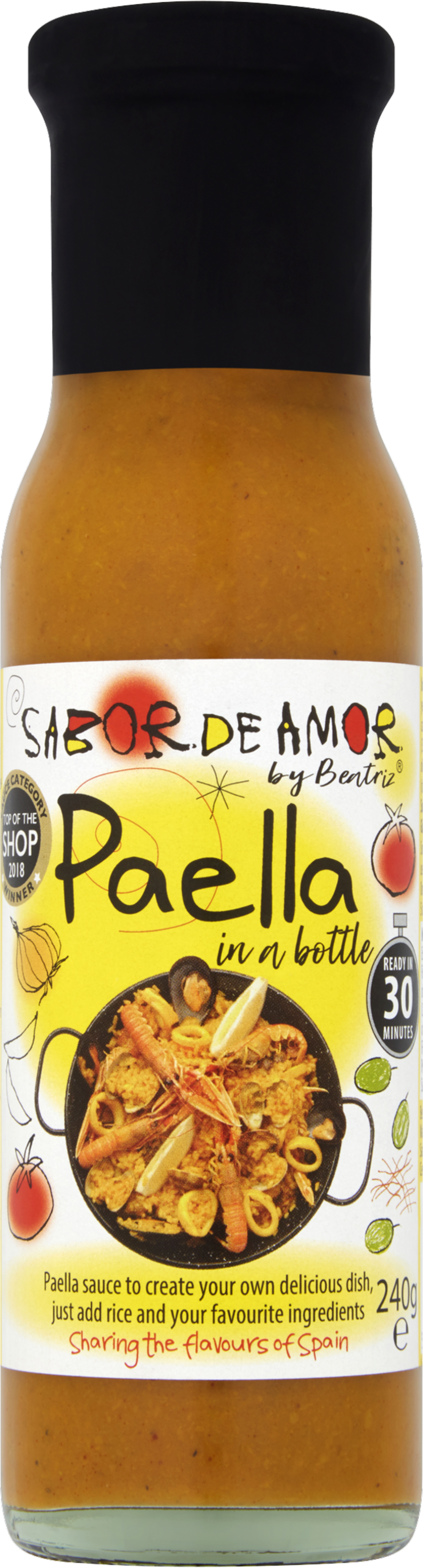 Our Paella in a Bottle is everything you need to make a traditional Paella. Full of flavour from fresh tomatoes, saffron and spices that have been reduced and intensified over time, so you can make an authentic tasting Paella in just 30 minutes.