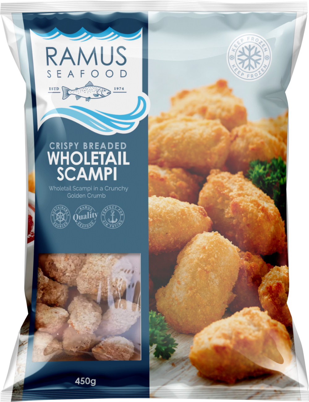 RAMUS SEAFOOD Breaded Wholetail Scampi 200g from Ramus Seafood.