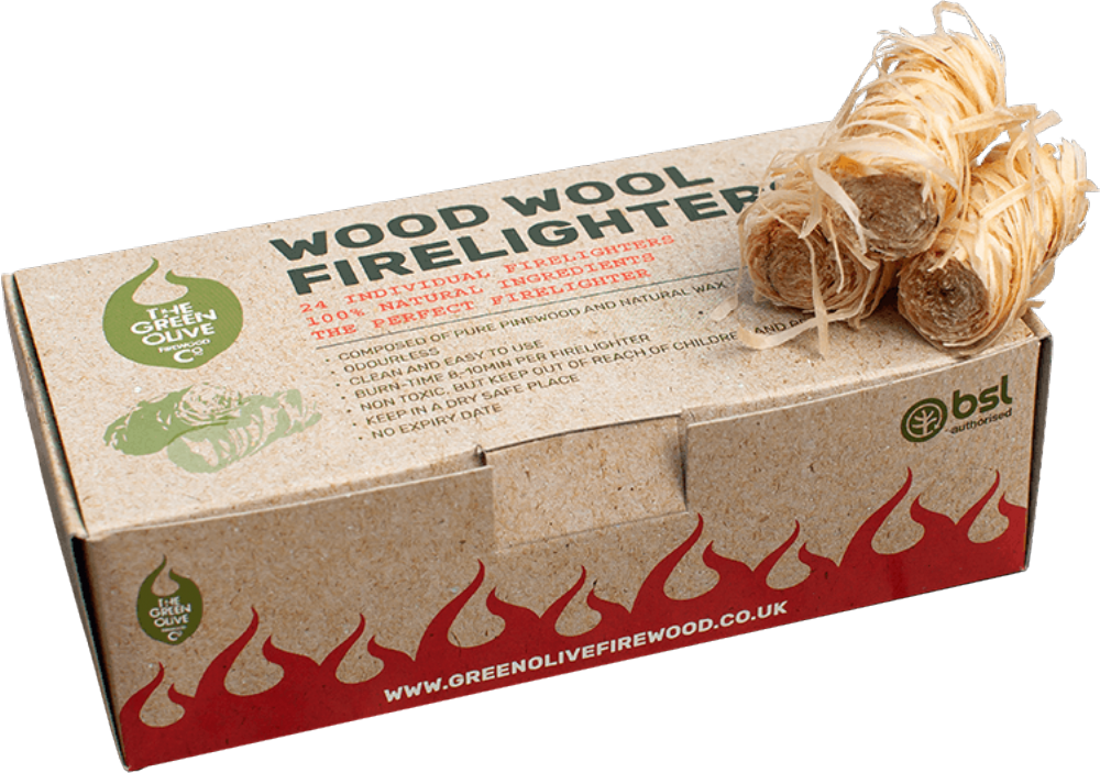 GREEN OLIVE FIREWOOD Wood Wool Firelighters 48pk
