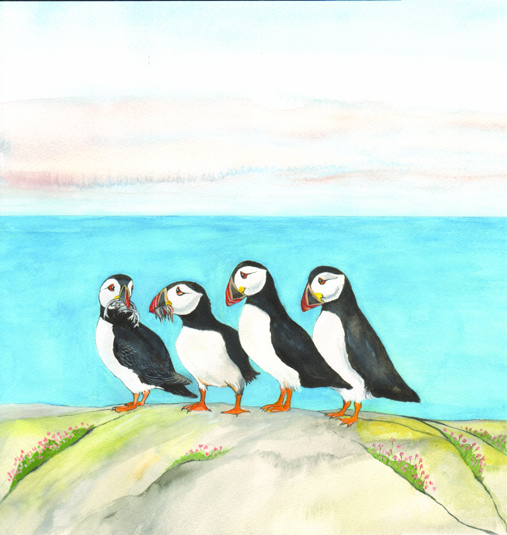 SUE PODBERY A Group of Puffins Card from Sue Podbery.