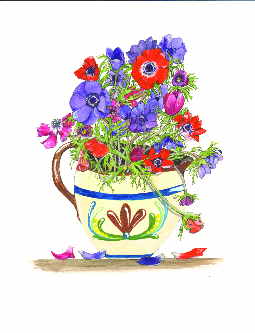 SUE PODBERY Anemones in a Vase Card from Sue Podbery.