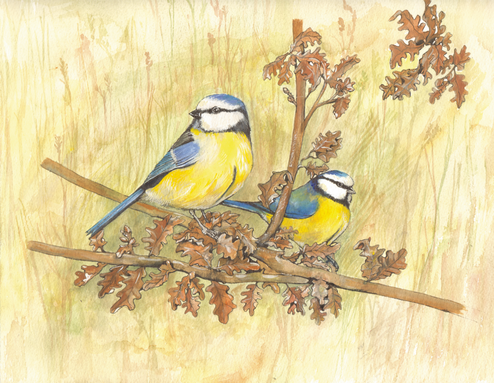 SUE PODBERY Blue Tits Card