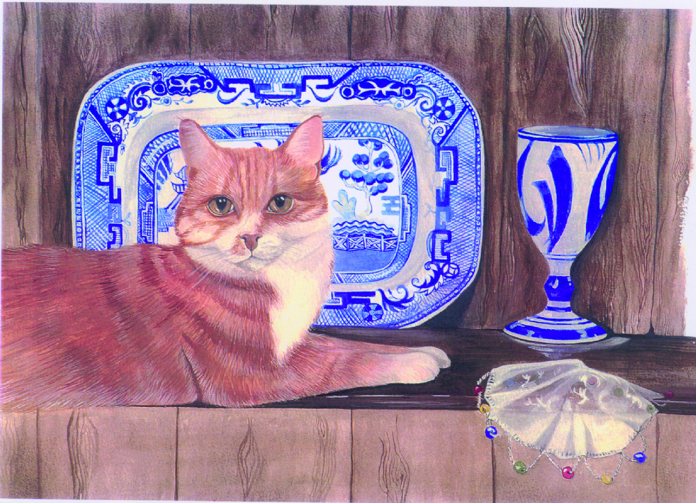 SUE PODBERY Cat and Blue China Card from Sue Podbery.