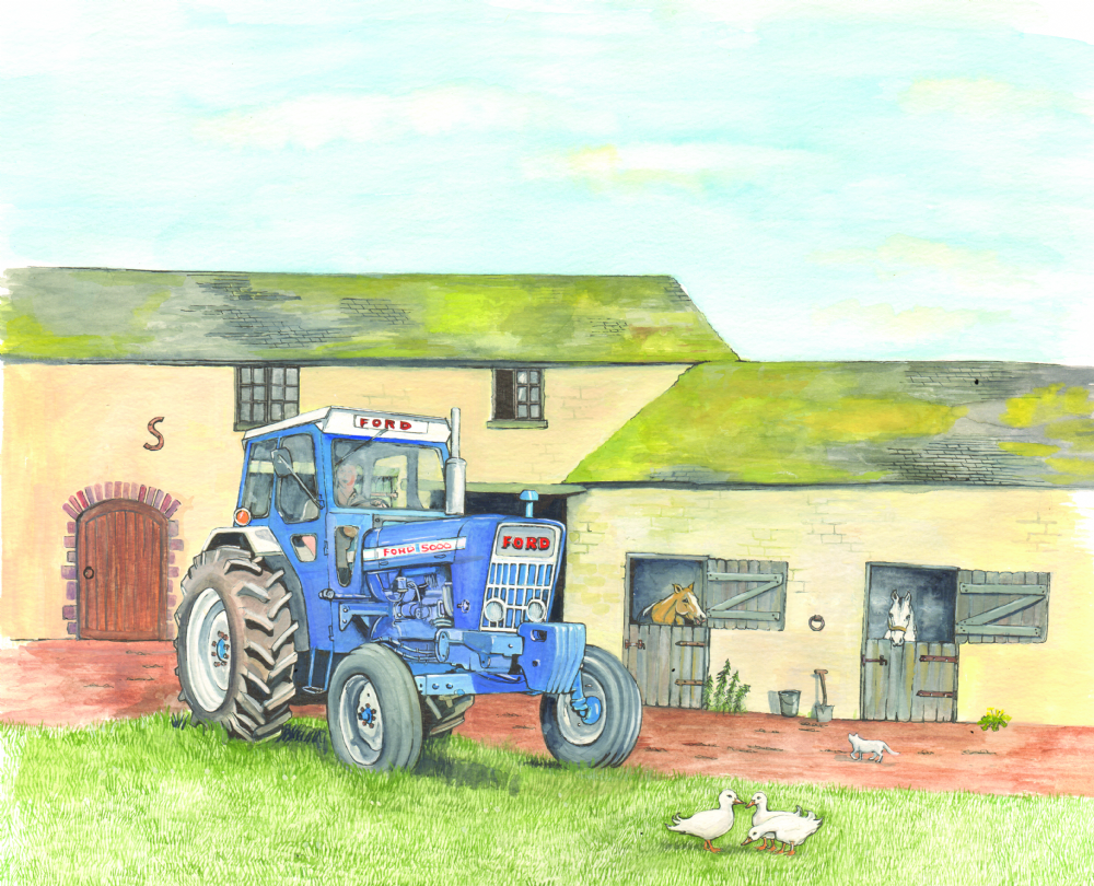 Most of Sue's early work was of her first love, horses then years of pet portraits followed. The first tractor she painted, the grey Ferguson, opened up a new direction. Having grown up in the country, the knowledge was there, waiting to be painted: work-a-day scenes (with plenty of mud!), the backdrop of English farm buildings which have seen generations of workers, the horseman of old, the transition of tractors and finally, today's giants.