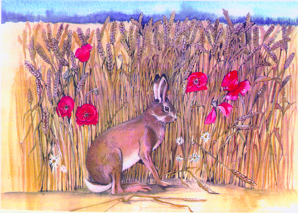 SUE PODBERY Hare in Cornfield Card from Sue Podbery.