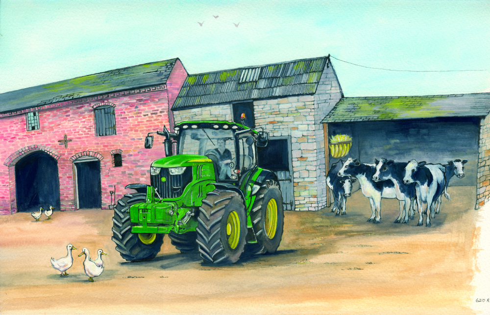 Most of Sue's early work was of her first love, horses then years of pet portraits followed. The first tractor she painted, the grey Ferguson, opened up a new direction. Having grown up in the country, the knowledge was there, waiting to be painted: work-a-day scenes (with plenty of mud!), the backdrop of English farm buildings which have seen generations of workers, the horseman of old, the transition of tractors and finally, today's giants.
