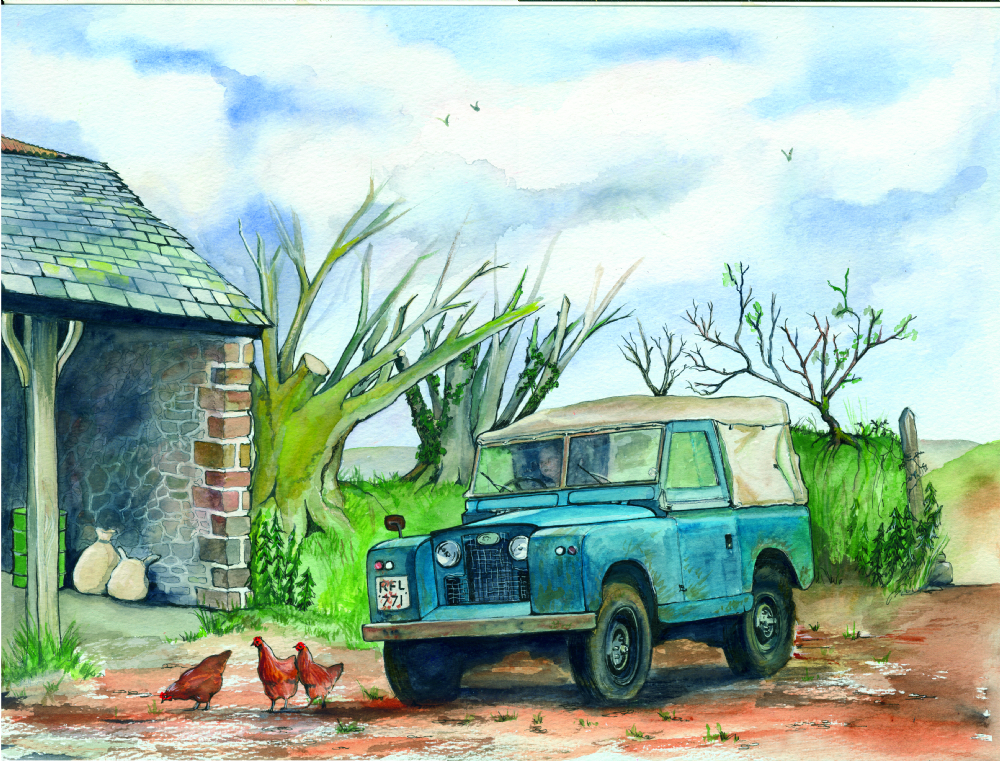 SUE PODBERY Land Rover Series II Card from Sue Podbery.