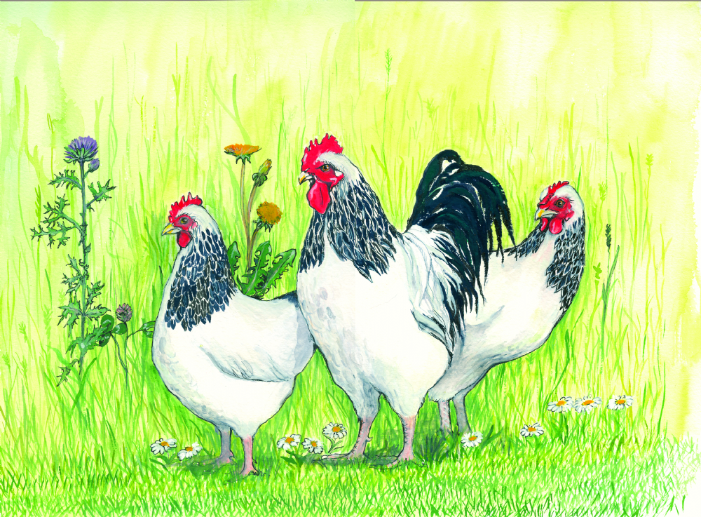 SUE PODBERY Light Sussex Chickens Card from Sue Podbery.
