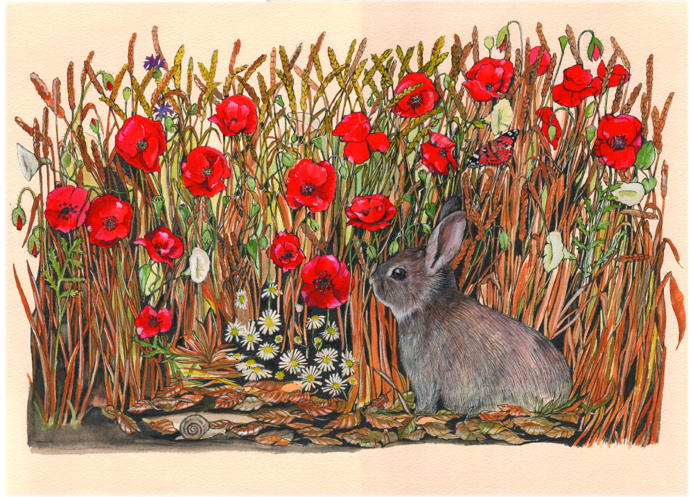 SUE PODBERY Rabbit and Poppies Card from Sue Podbery.