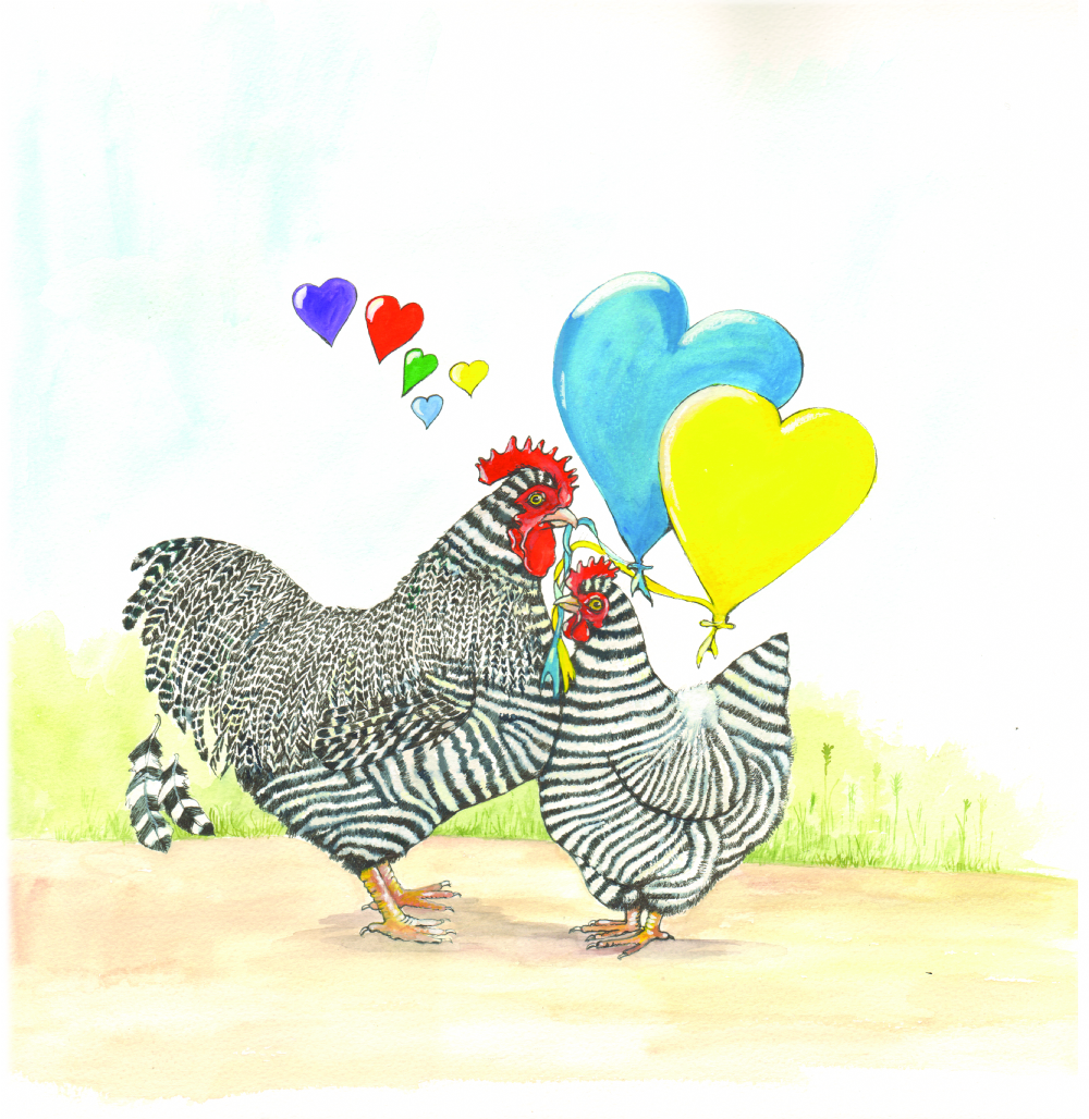SUE PODBERY Romantic Chickens Card