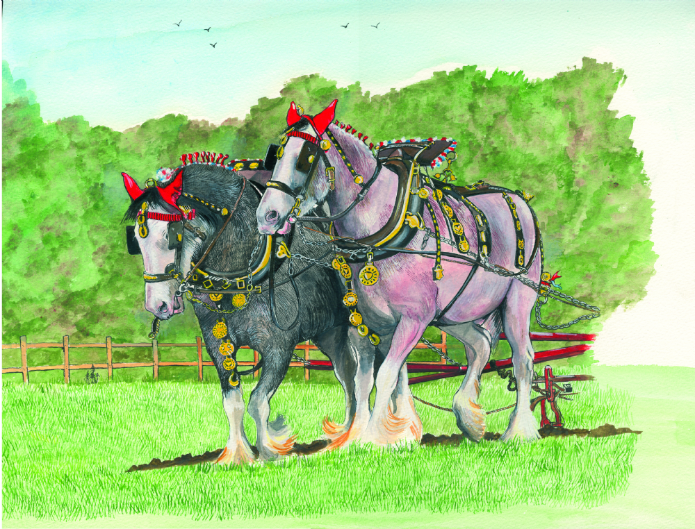 Most of Sue's early work was of her first love, horses then years of pet portraits followed. The first tractor she painted, the grey Ferguson, opened up a new direction. Having grown up in the country, the knowledge was there, waiting to be painted: work-a-day scenes (with plenty of mud!), the backdrop of English farm buildings which have seen generations of workers, the horseman of old, the transition of tractors and finally, today's giants.