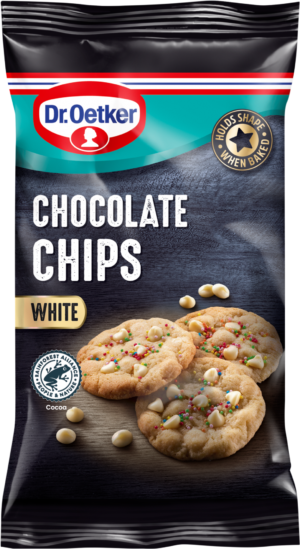 Dr. Oetker White Chocolate Chips are a smooth, creamy chocolate chip that's perfect for muffins, cookies and even topping ice cream. We've developed our chocolate chips so that they keep their form when baked - but still have a deliciously gooey chocolatey taste. Great for kids baking. Why not try placing the bag in a jug of warm water to melt the chocolate chips, once melted snip to corner of the pack and use to drizzle the chocolate.