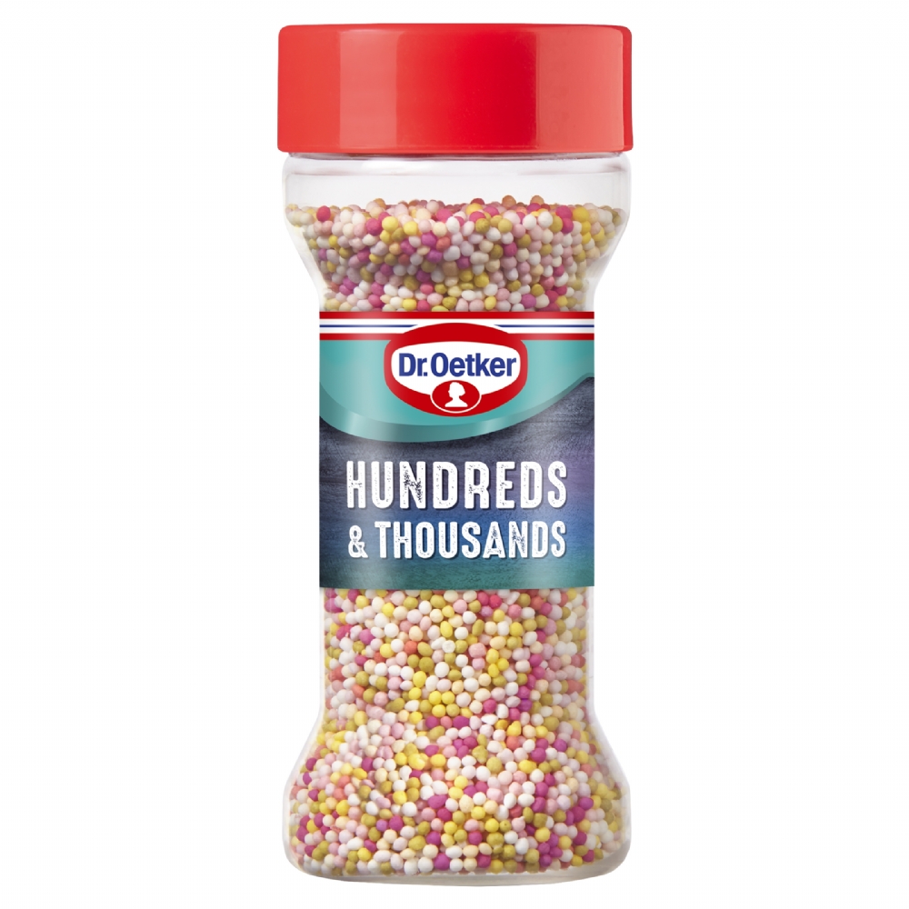Brighten up your bakes with our Dr. Oetker Hundreds & Thousands sprinkles. These colourful sugar balls are a classic family favourite and great for kids baking. Add some fun to your cake pops, cupcakes, cookies or even ice cream. For the best results, we suggest sprinkling the hundreds & thousands just before the icing sets - that way, more will stick to the bake.