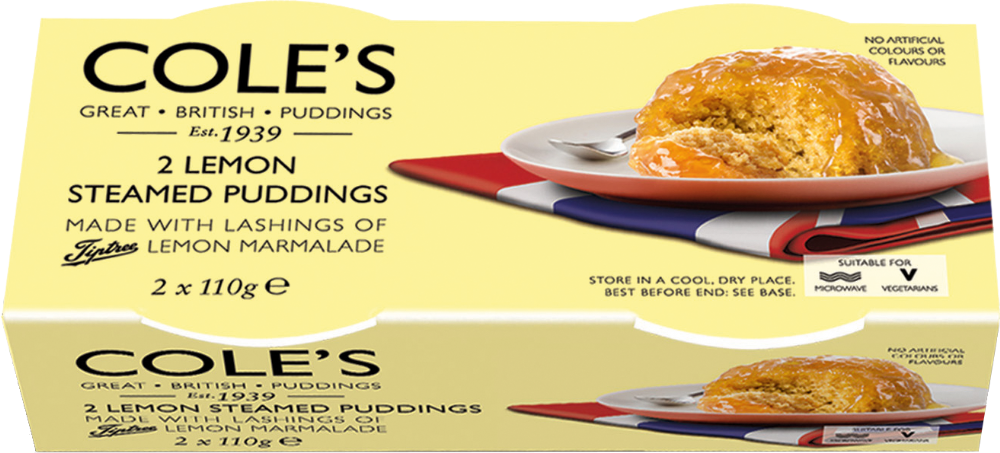 Lemon Marmalade (39%) (Sugar, Lemons, Acidity Regulator: Sodium Citrate, Gelling Agent: Pectin), Breadcrumbs (Wheat Flour (Wheat Flour, Calcium Carbonate, Iron, Niacin, Thiamine), Water, Salt, Yeast), Wheat Flour (Wheat Flour, Calcium Carbonate, Iron, Niacin, Thiamine), Sugar, Vegetable Suet (Palm Oil, Sunflower Oil, Wheat Flour (Wheat Flour, Calcium Carbonate, Iron, Niacin, Thiamine)), Reconstituted Skimmed Milk, Golden Syrup, Humectant: Vegetable Glycerol, Baking Powder (Raising Agents (E450i, E500, Wheat Flour (Wheat Flour, Calcium Carbonate, Iron, Niacin, Thiamine)), Salt, Preservative: Potassium Sorbate.