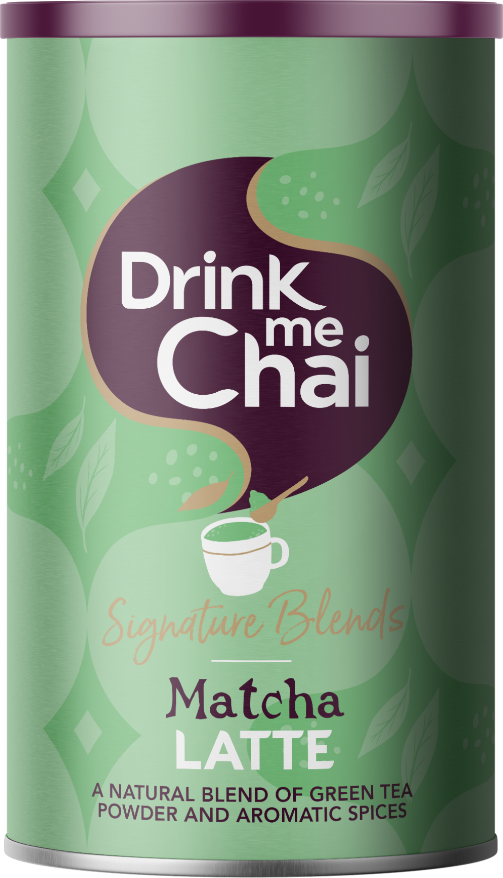 Signature Matcha Chai Latte, a natural powdered blend of matcha green tea with skimmed milk and spices.