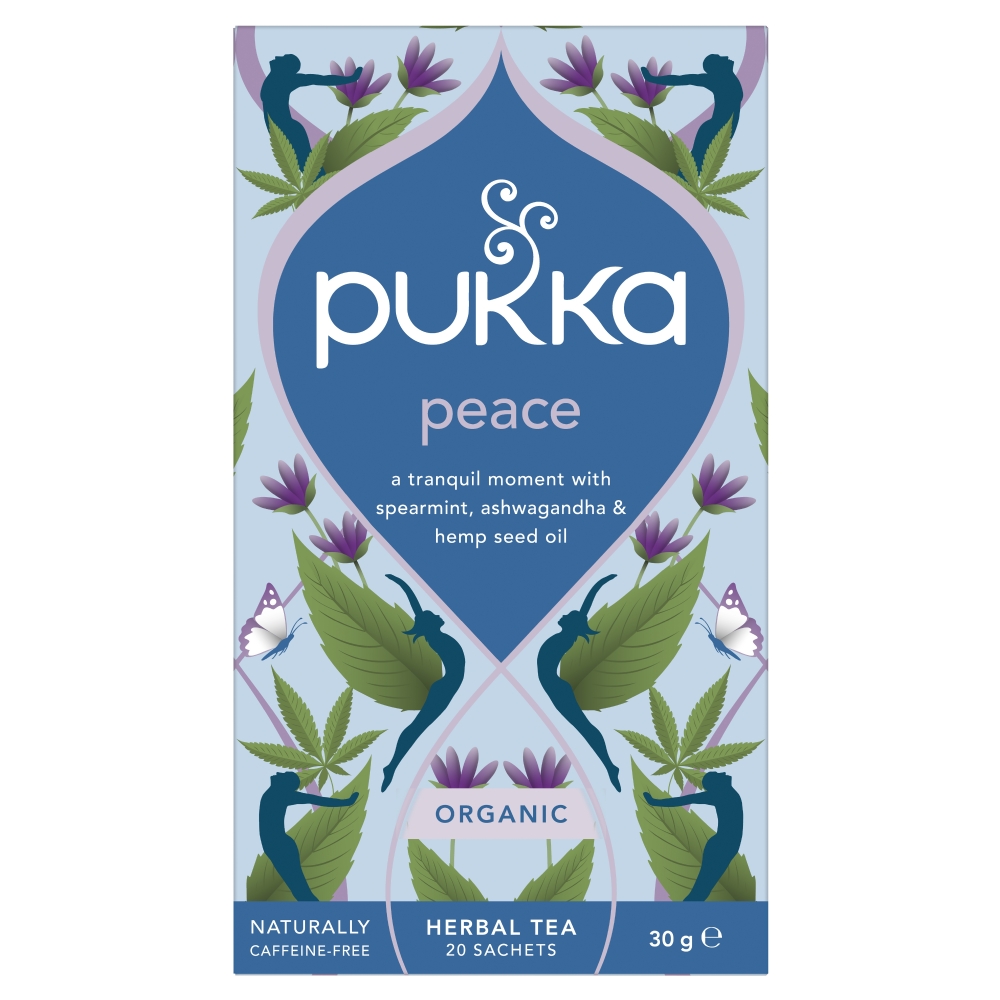 Feel calm, with our expertly blended Peace tea. Crafted with relaxing herbs, chamomile, lavender, ashwagandha, and hemp, our unwinding blend naturally supports your mind and body's natural response life's pressures. Created by herbal experts and nutritionists, our Peace tea combines the latest scientific research with traditional herbal wisdom to naturally calm you. Each compostable tea bag is full of essential oils and the highest quality herbs, specifically sourced for their soothing properties. The perfect calming cup that is kind to the mind, enjoy the serene sensation and find peace