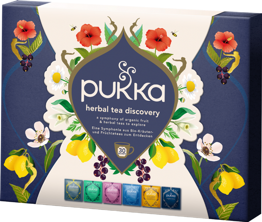 Rooibos Leaf (32%), Hibiscus Flower, Rosehip, Blackcurrant Fruit (6%), Liquorice Root, Spearmint Leaf, Rosemary Leaf, Blackberry Fruit (2%), Ginseng Root (2%), Blackcurrant Flavour (2%), Blueberry Flavour, Lemongrass Essential Oil Flavour, Spearmint Essential Oil Flavour.