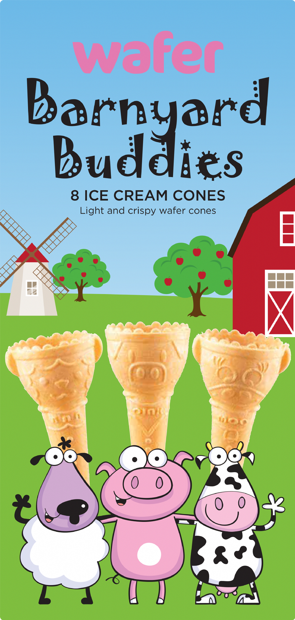 Bring the farmyard fun home with Wafer's Barnyard Buddies. These light and crispy wafer cones feature fun animal designs, perfect for adding a playful twist to birthdays, parties or simply adding some extra enjoyment to a summer afternoon treat.