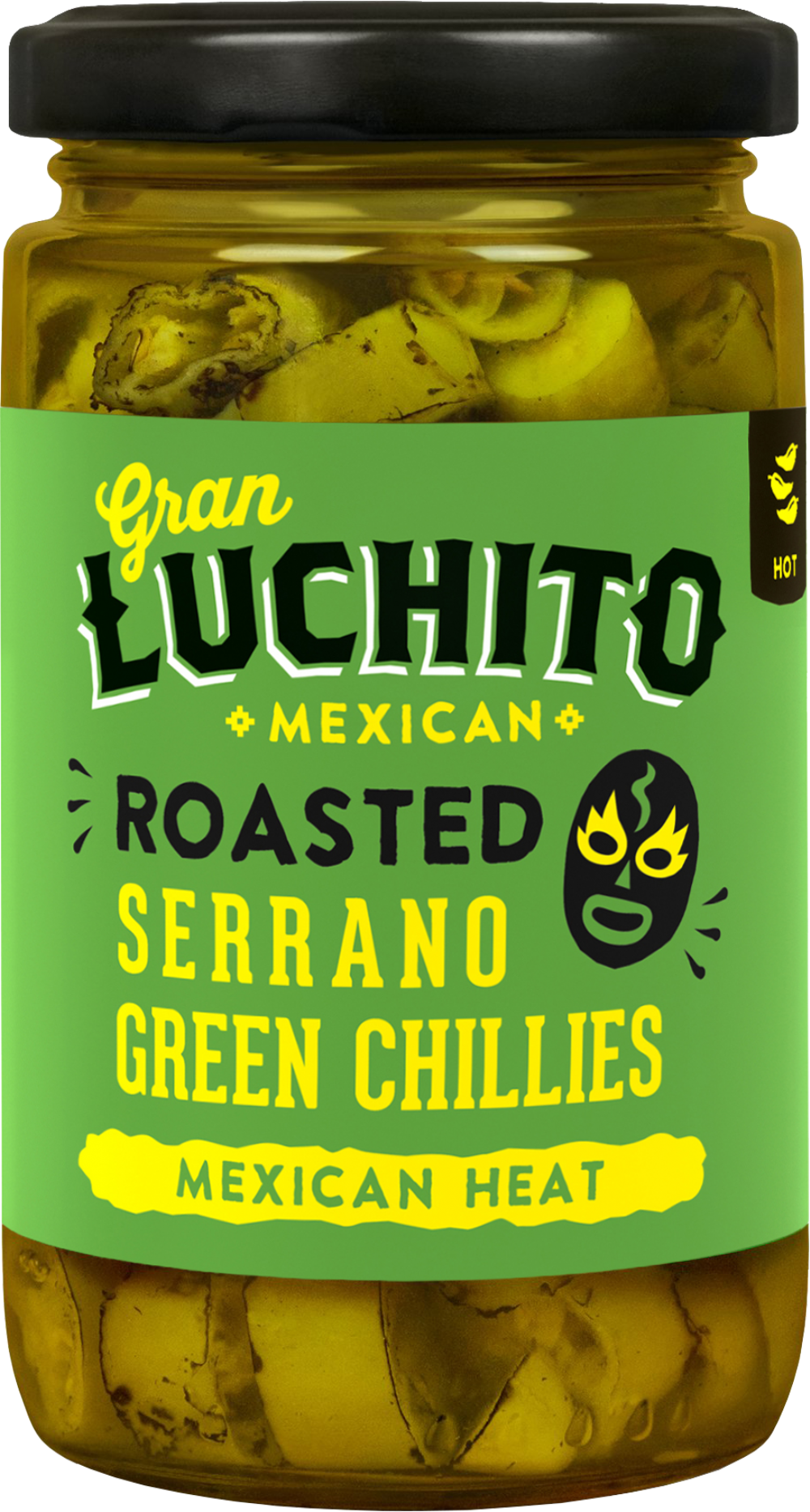 Roasted Serrano Green Chillies 215g from Gran Luchito.