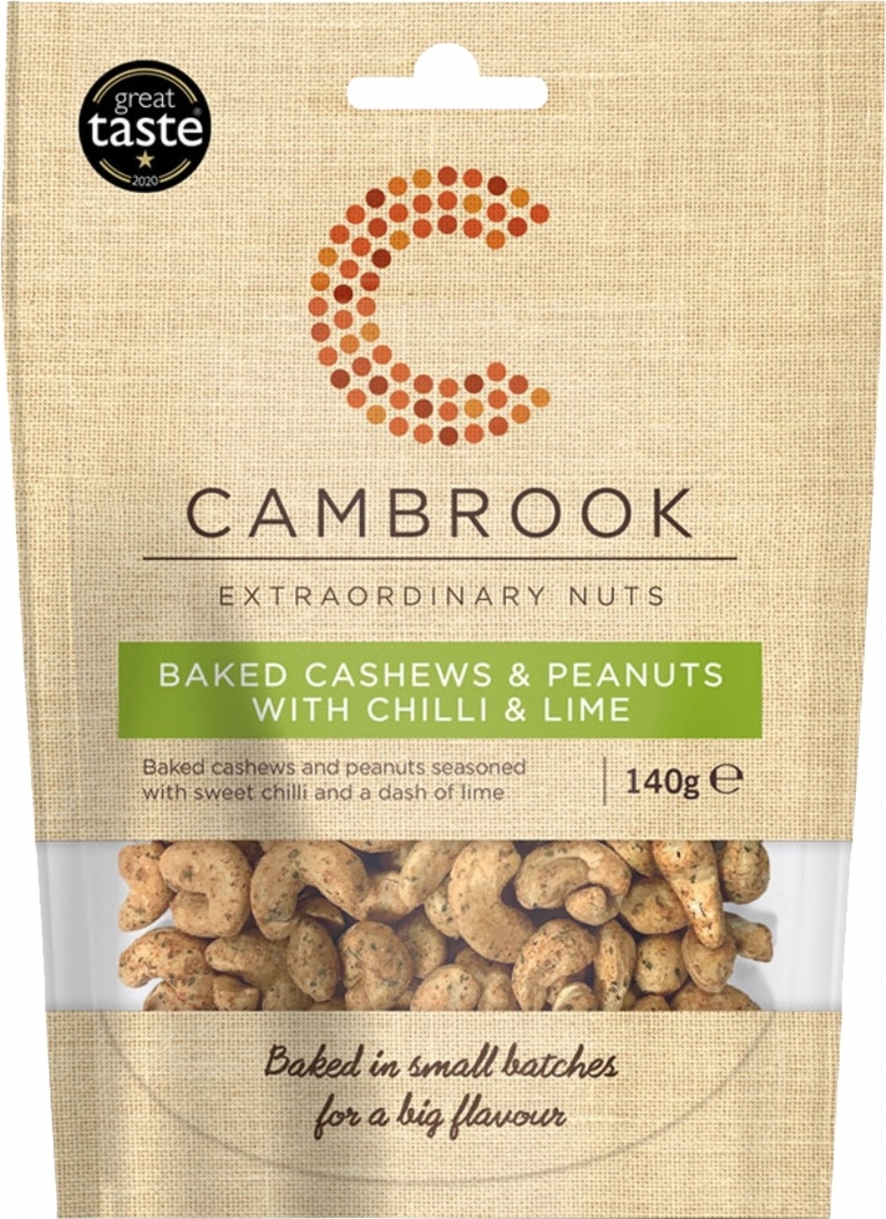 Cashews (61%), Peanuts (33%), Chilli Seasoning (3%): Sugar, Salt, Dried Soy Sauce (contains: Soy Beans, Salt, Spirit Vinegar), Garlic, Onion, Chilli, Yeast Extract, Tomato, Red Bell Pepper, Paprika Extract, Spices, Citric Acid, Rapeseed Oil, Natural Flavouring. Lime (0.7%): Lime Juice Concentrate, Maltodextrin, Emulsifier: Gum Acacia). Paprika, Chervil Leaf. Stabiliser: Gum Arabic.