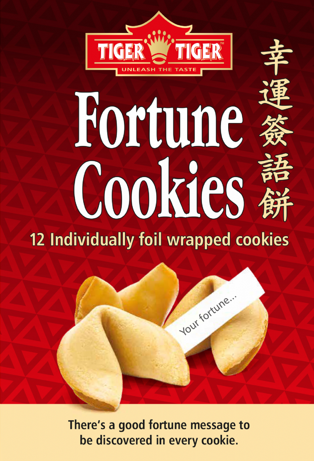 12 individually foil wrapped cookies. There's a good fortune message to be discovered in every cookie!