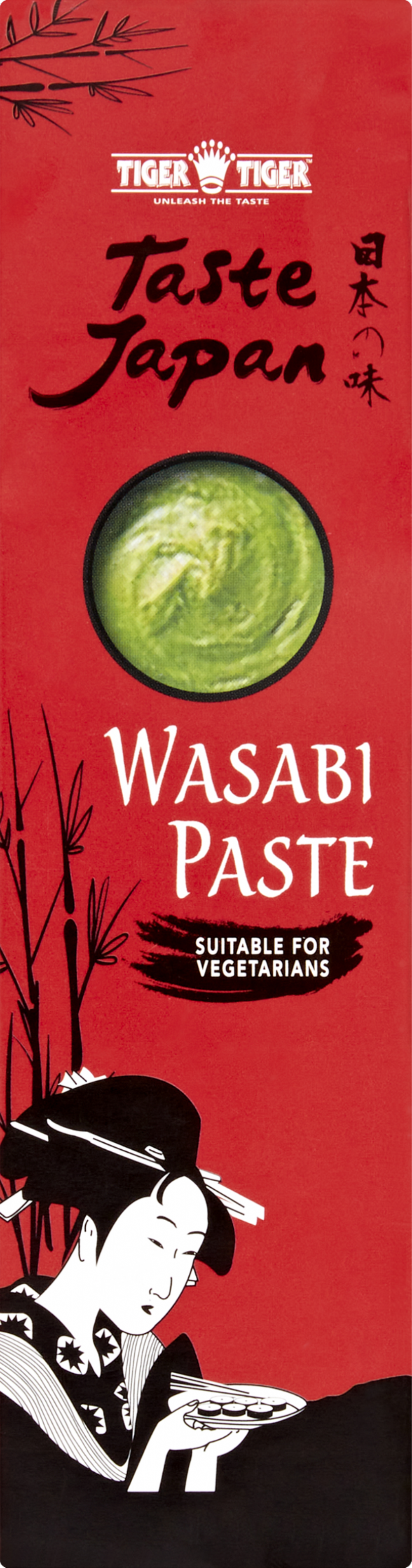 Tiger Tiger Wasabi Paste contains real wasabi stems to deliver a hot and pungent taste to sushi, dressings and dipping sauces. Use sparingly.