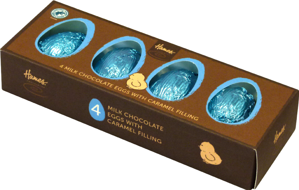 *CLEARANCE* HAMES 4 Milk Choc Eggs/Caramel 10x160g BBE 05/09