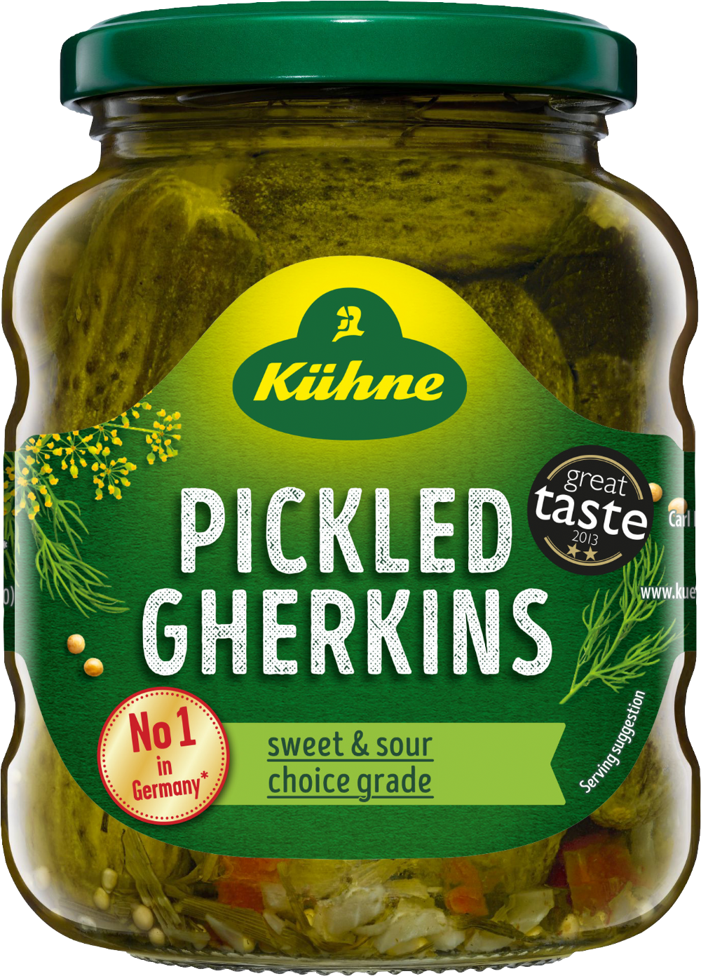Piquant savoury pickled gherkins - refined with borage and coriander