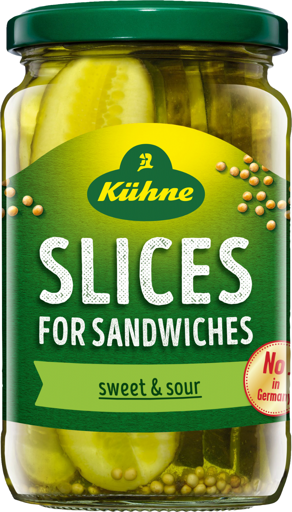 Sweet & Sour Gherkin Slices for Sandwiches 330g from Kuhne.