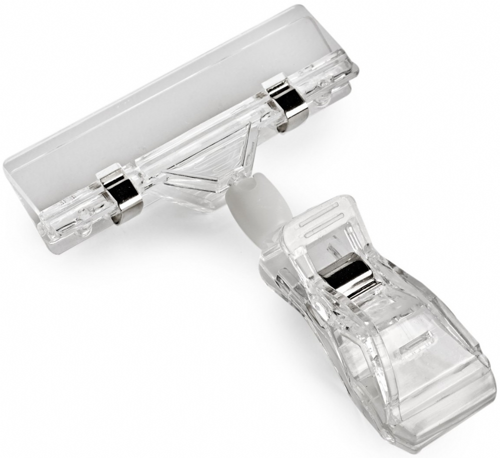 Made from durable clear plastic with strong metal spring clips, they securely hold your signs while allowing the head to rotate and pivot for the best visibility. Also available in a long-armed version, with the option to purchase complete with chalkboard or natural slate inserts.