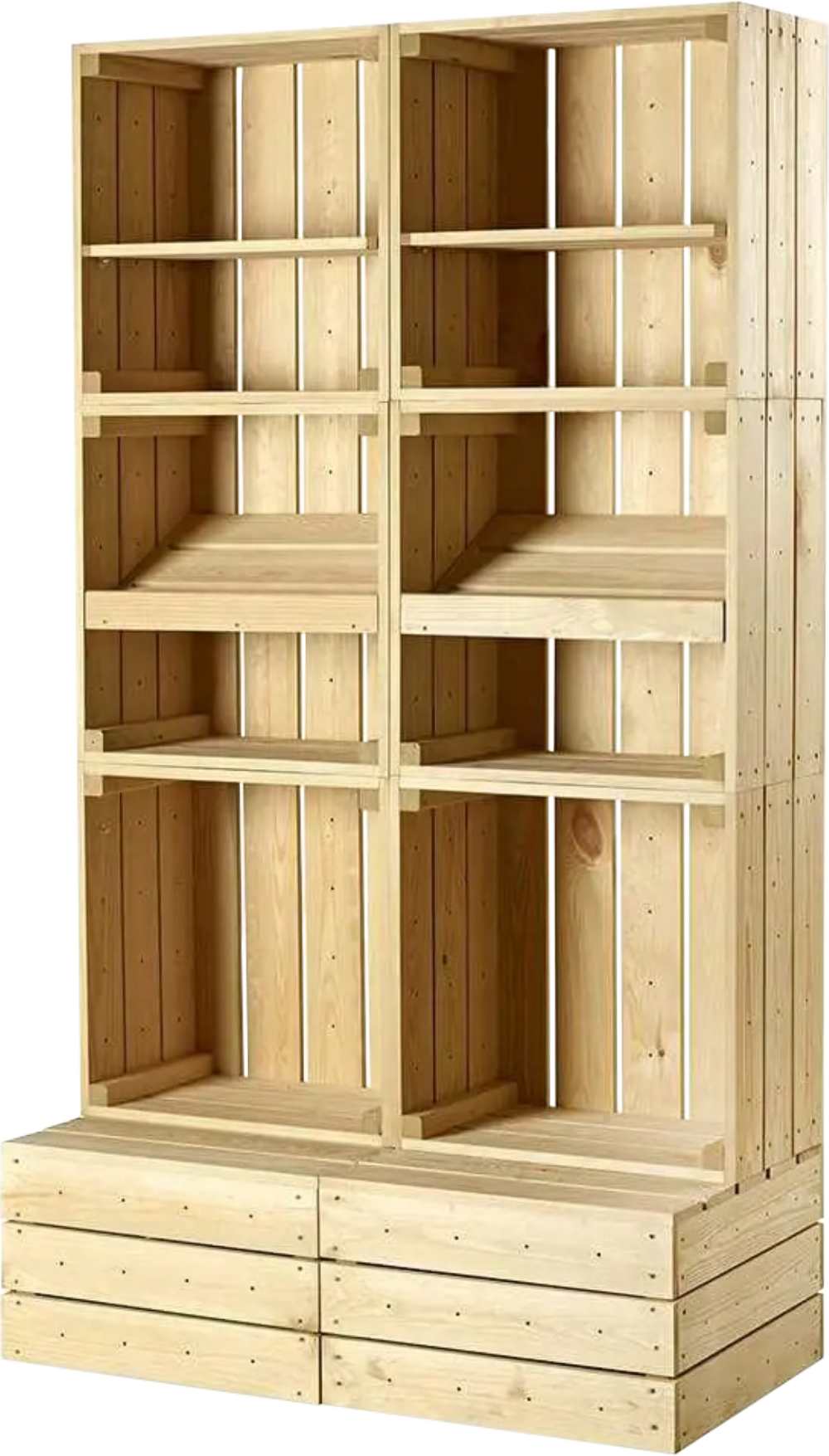 The pre-assembled components join together securely with inter screws requiring no expensive shopfitter. The attractive European pine will complement your existing fixtures. Plus it can be easily incorporated into your retail space. Connect multiple units together to fit any wall, bay or window. Additional units will require extra inter screws. Please note: We recommend fixing large CrateWall displays to the wall for extra stability.