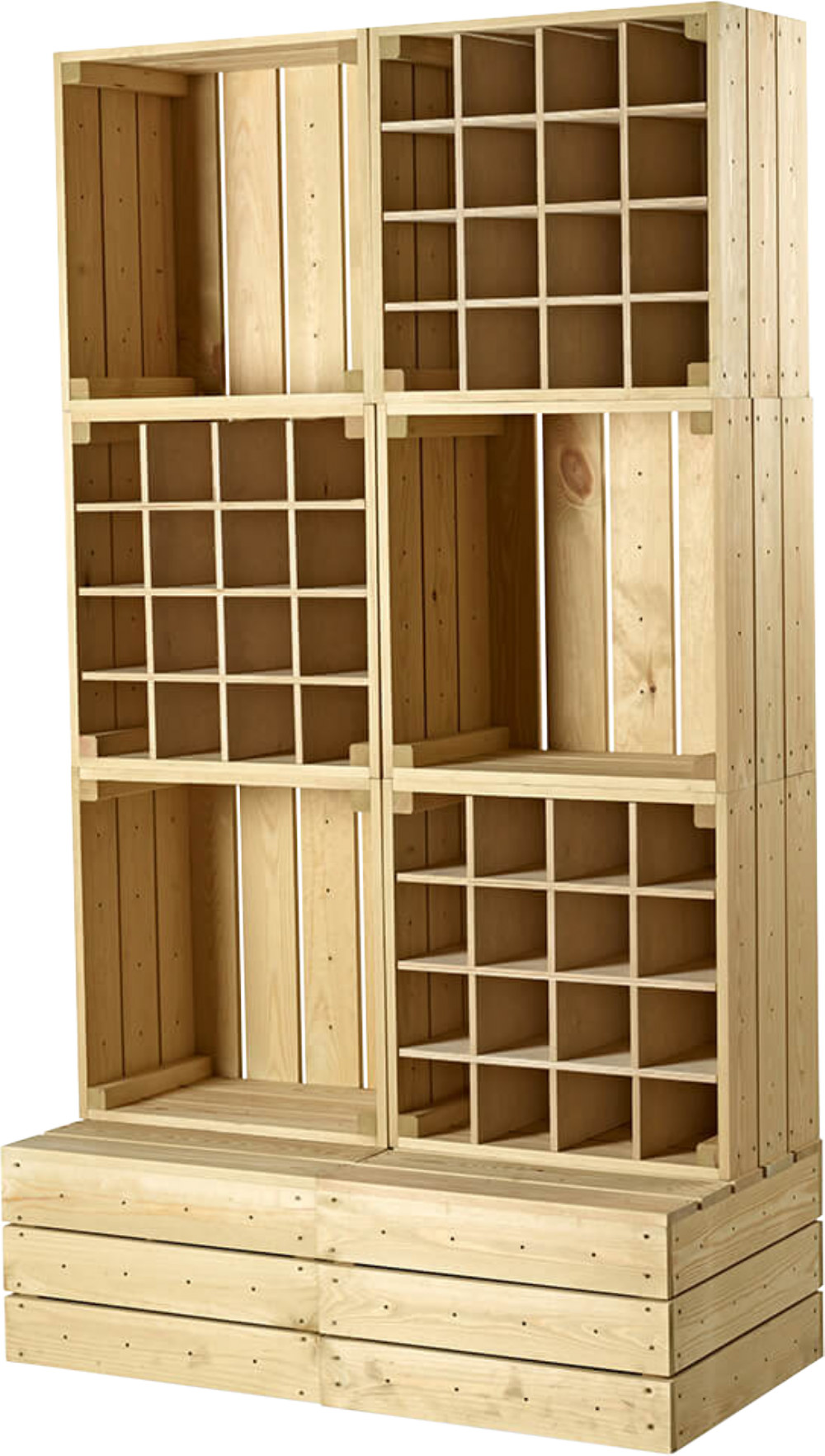 The pre-assembled components join together securely with inter screws requiring no expensive shopfitter. Plus, they're discreet. The attractive European pine complements existing fixtures. The wall can be incorporated into your retail space with ease. Connect multiple units together to fit any wall, bay or window. Additional units will require extra inter screws. Please note: We recommend fixing large CrateWall displays to the wall for extra stability.