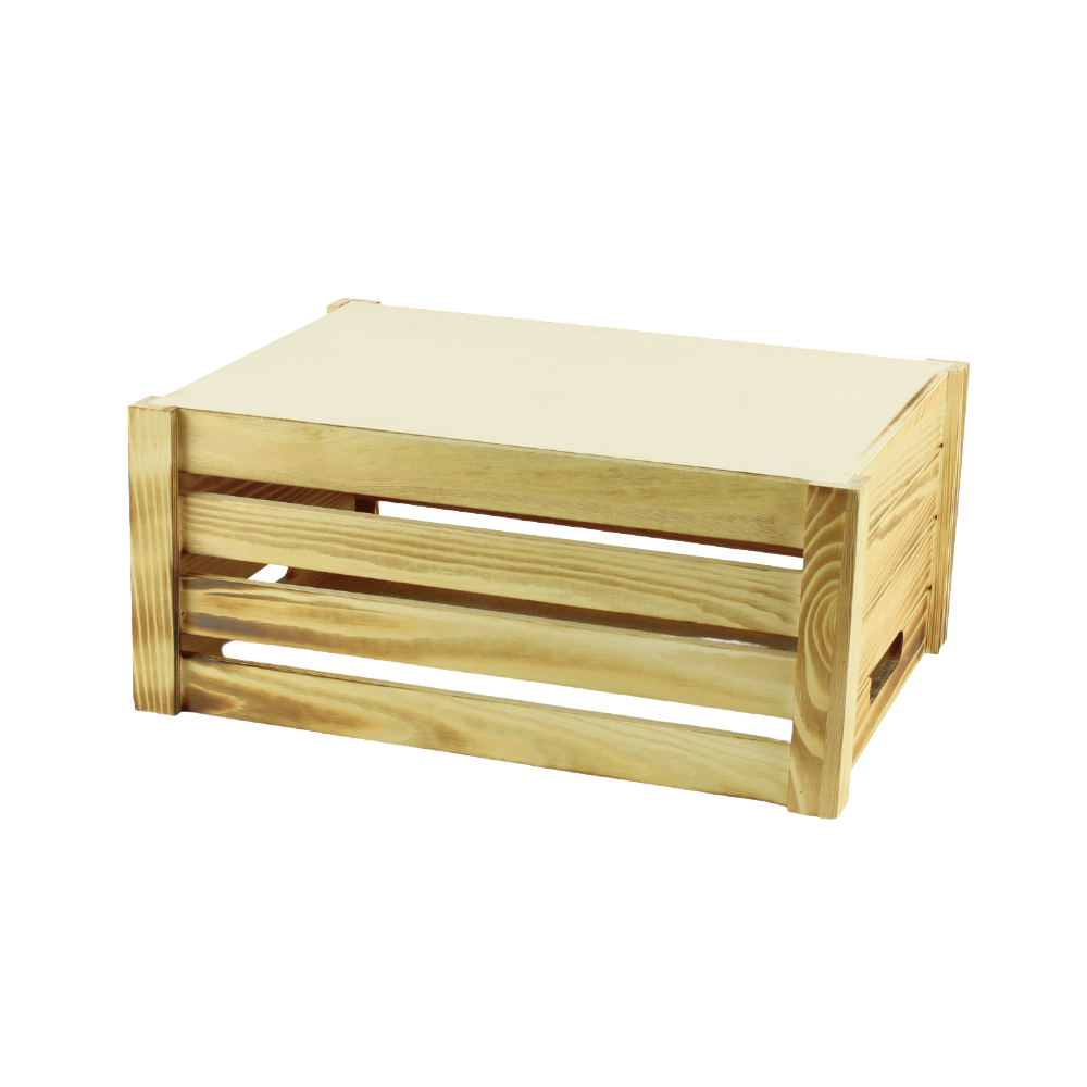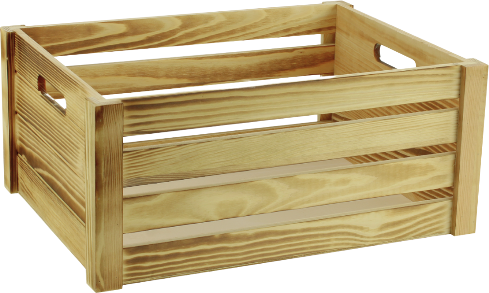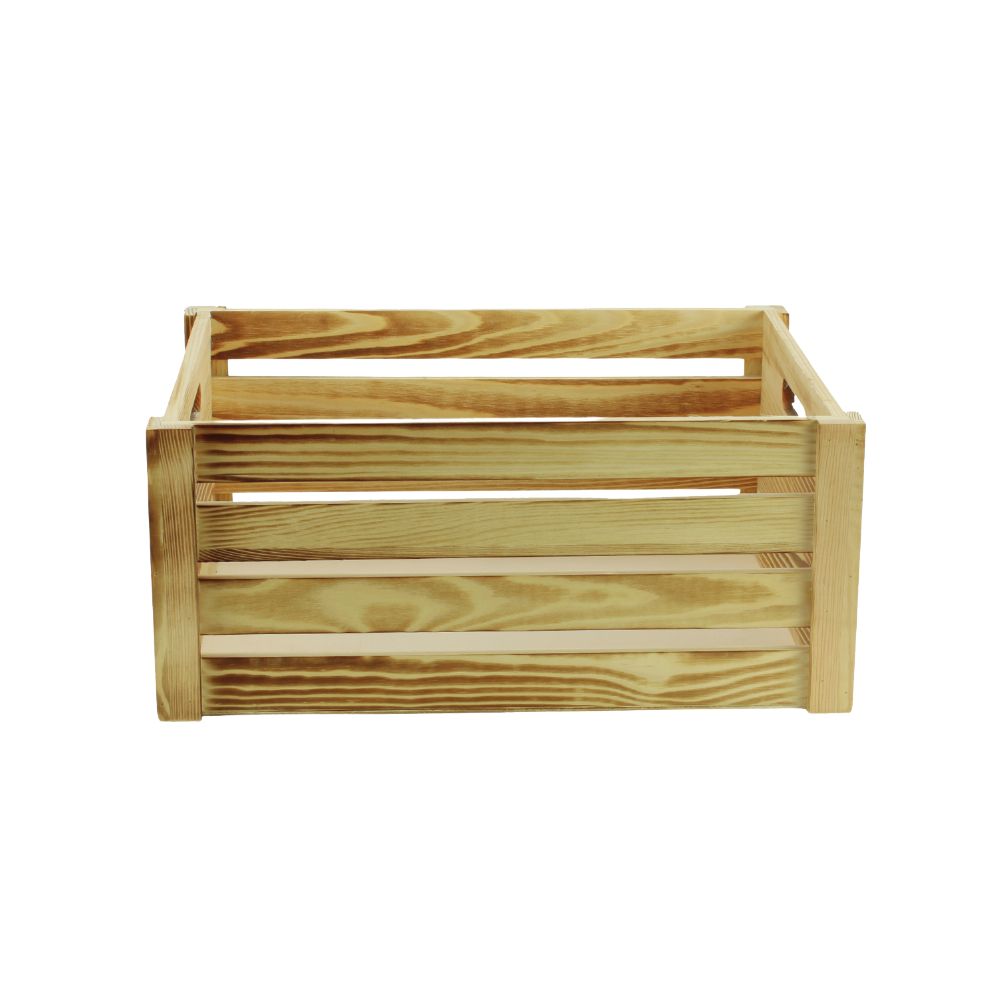 Our Large Wooden Crate in a burnt finish is perfect for displays in a rustic style. Due to the strong and sturdy construction, the wooden hamper crate is versatile. They're perfect for displaying merchandise in your store or for creating gorgeous hampers.