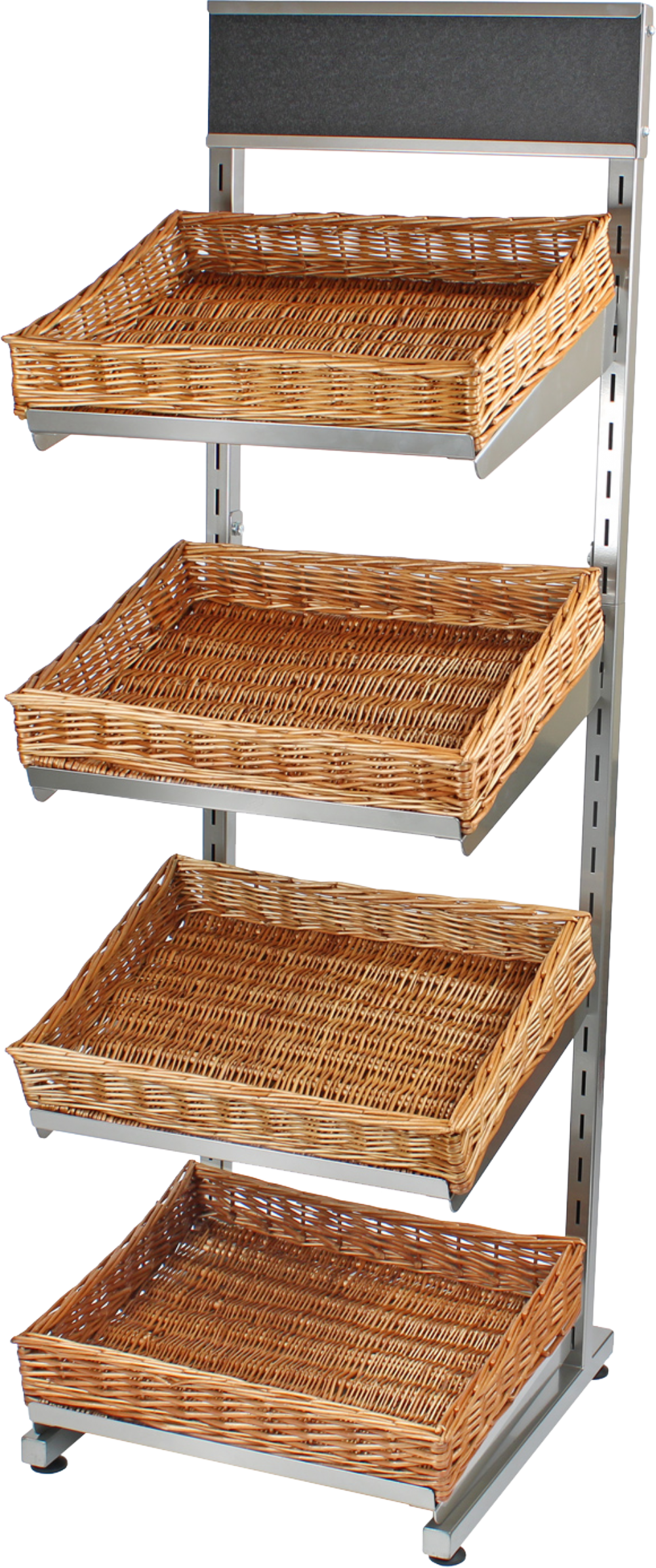 Bring your retail space to life with this 150cm Metal Display Stand bundle. Made from durable mild steel, the 150cm tall FSDU comes in a modern and sleek silver bronze finish. Flat-packed and easy to assemble, it's perfect for a variety of shop settings. The freestanding metal frame allows you to adapt your displays whenever required. Move the stand around your retail space and reconfigure to change up your displays. This kit also includes a POS header, chalkboard, four shelves and four wicker display baskets.