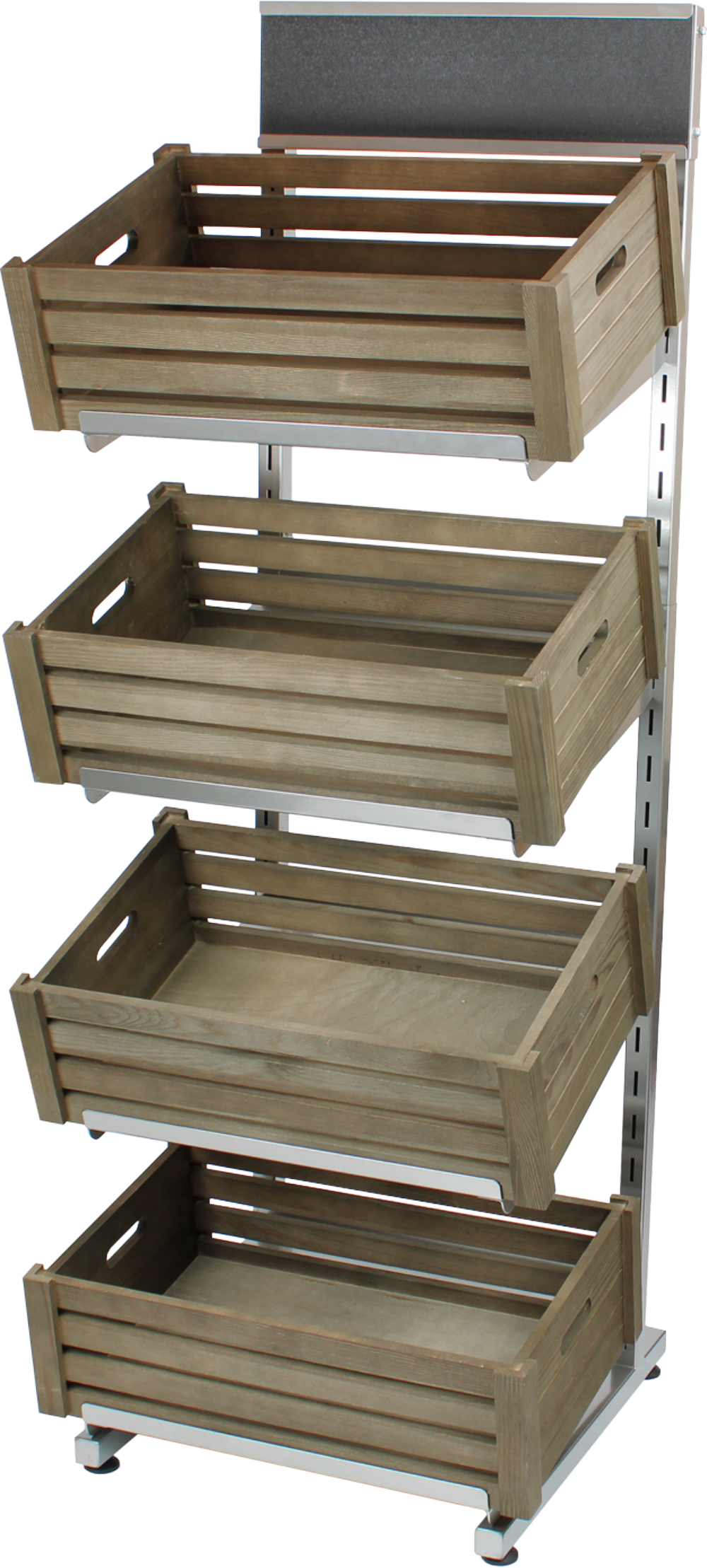 Bring your shop space to life with this 150cm Metal Display Stand bundle. The UK made freestanding display unit is crafted from durable mild steel, perfect for any retail setting. Finished in a silver bronze, the FSDU comes flat-packed and is easy to assemble. Move the stand around your store and reconfigure to switch up your displays when needed. This kit also includes a POS header, chalkboard, four shelves and four wooden crates.