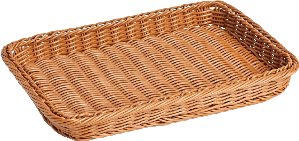 The low-rise edges of this shallow tray provide excellent product visibility, making it easy for customers to see and access items such as cheeses, small baked goods, or speciality deli products. A reinforced wire frame around the top edge adds extra strength and durability, ensuring the basket maintains its shape even under frequent use. Like all our Polywicker display baskets, it is 100% food-safe and dishwasher-safe, offering a practical, stylish, and easy-to-clean solution for presenting fresh and unwrapped food items.