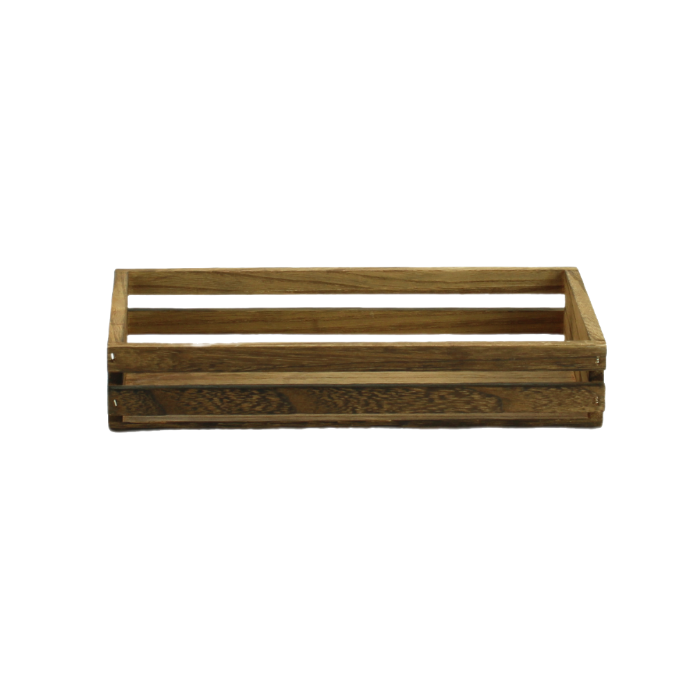 Our Small Dark Wooden Crate is perfect for creating hampers or using within displays. If you're going for a rustic style within your retail space, then this hamper works well. Fill with a variety of merchandise. You can line the hamper with hessian or linen to add to the rustic aesthetic. Given its versatility, flip the display crate upside down and you've got a display riser.